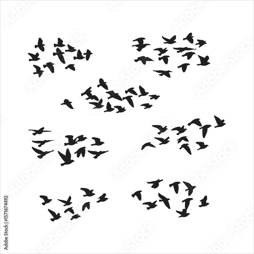 Naklejka premium Flock of birds in flight silhouette isolated on white background Art &...