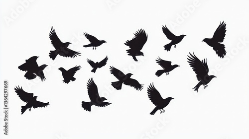 © background, Obraz premium Flock of Birds Silhouette with Black Birds Flying.
