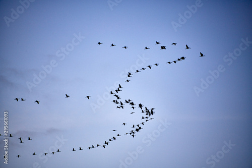Obraz premium flock of cranes flying to place to sleep