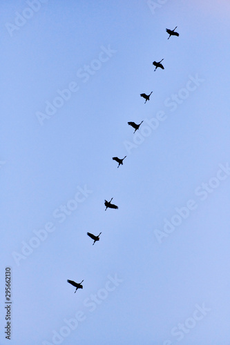 Obraz premium flock of cranes flying to place to sleep