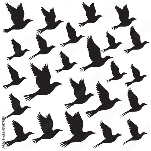Fototapeta premium Flock of flying birds silhouette vector, Flying bird black silhouette vector set