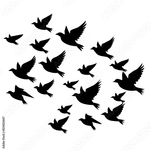 Fototapeta premium Flock of flying birds vector silhouette, white background