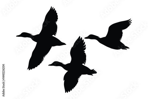 © Trendy CraftSVG , Obraz premium Flock of flying duck silhouette vector, duck bird icon vector art illustration
