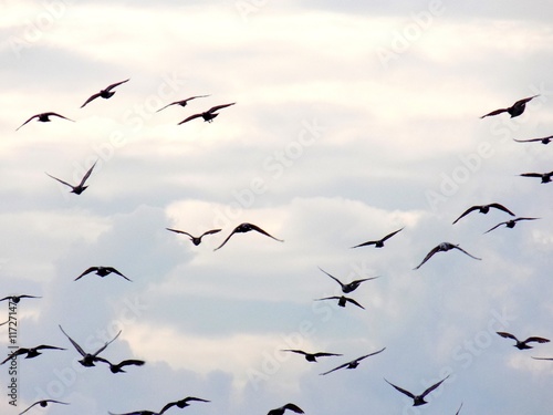Fototapeta premium Flock of flying pigeons