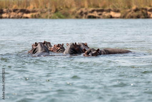 © 안구정화, Fototapeta premium flock of hippos in Zambezi River