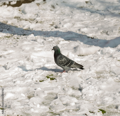 © donikz, Fototapeta premium flock of pigeons on snow in winter