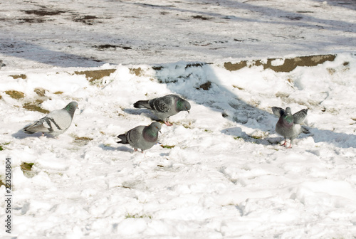 © donikz, Obraz premium flock of pigeons on snow in winter