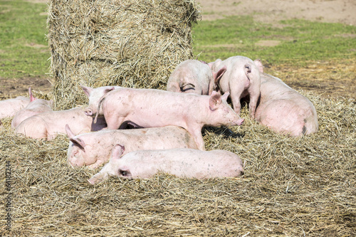 © travelview, Fototapeta premium flock of pigs in a bio farm