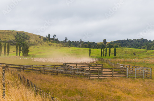 © superjoseph, Naklejka premium Flock of sheep grazing in a meadow