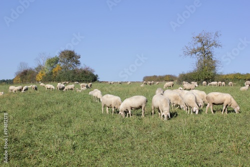 © kraximus2010, Fototapeta premium Flock of sheep with male animals to these are called Bock or Aries and female sheep