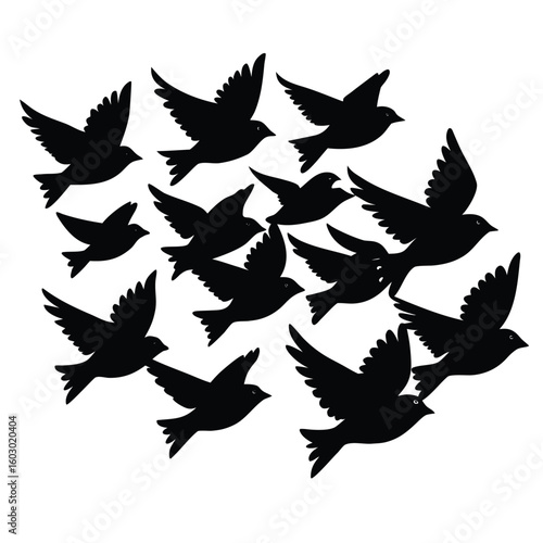 © Dwip, Fototapeta premium Flock of silhouetted birds in flight