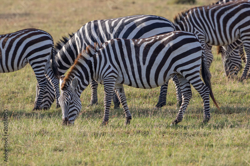 Naklejka premium Flock of zebras grazing on the savannah