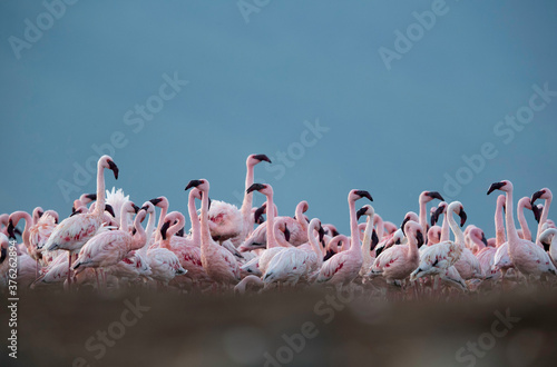 Fototapeta premium Flocks of Lesser Flamingos at Lake Bogoria, Kenya