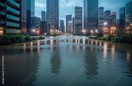 Fototapeta premium Flood, flooded city after rainfall, ecological disaster.
