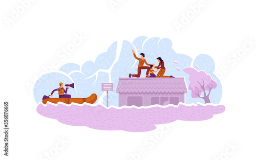 © IMG visuals characte, Obraz premium Flood rescue 2D vector web banner, poster