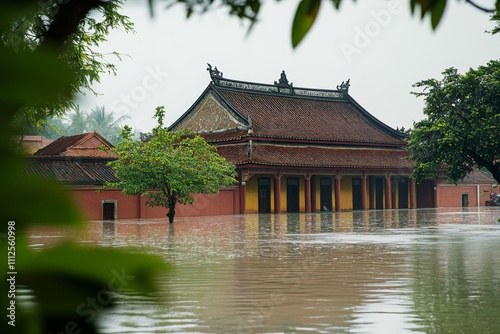 © Shahrimi, Fototapeta premium Flooded Ancient Chinese Temple Amidst Lush Greenery