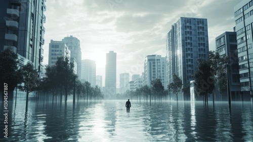 Fototapeta premium Flooded City Street, Lone Figure