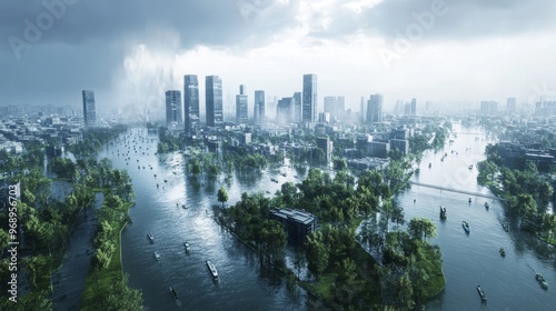 © OnuTH, Obraz premium Flooded Cityscape.