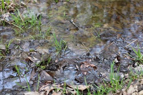 © Adventuring Dave, Obraz premium Flooded forest floor with grass and mud