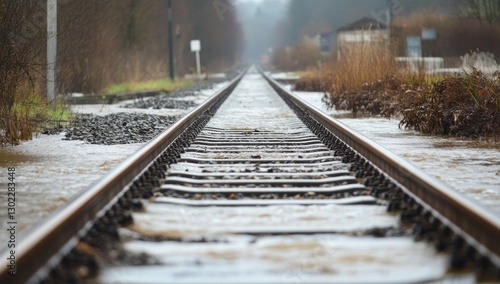 Fototapeta premium Flooded Railway Tracks: A Stark Reminder of Nature's Power