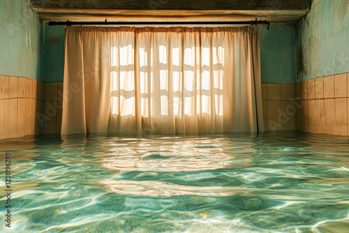 Obraz premium Flooded room scene abandoned building indoor low angle serenity