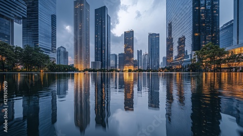 © Sofia, Naklejka premium Flooded urban skyline with silver blue black color scheme