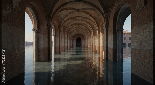 © ani, Naklejka premium Flooded Venetian archway hallway