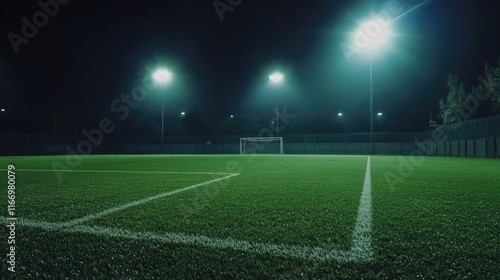 © Badass Prodigy, Obraz premium Floodlit all-weather artificial football pitch