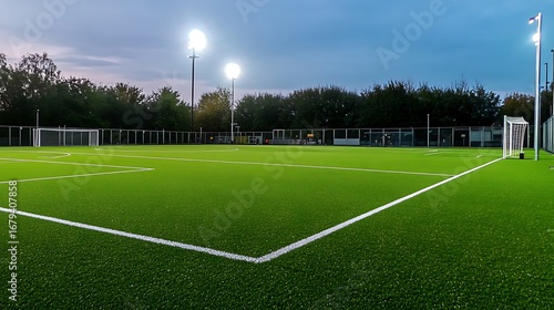 © Riyad Shikdar, Obraz premium Floodlit all weather 3G artificial grass football