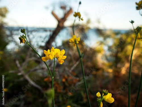 © carles, Obraz premium flor amarilla con el mar de fondo desenfocado