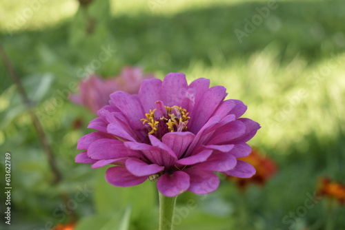 © Dan, Obraz premium Flor de color rosa en un prado verde, primer plano macro
