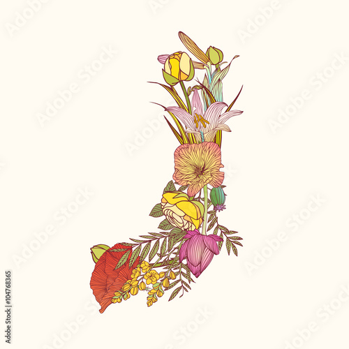 © Crazy nook, Fototapeta premium Floral alphabet. Letter J