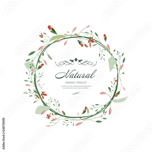© Felizlalala, Obraz premium Floral and leaf round frame. Hand drawn decoration flower wedding.