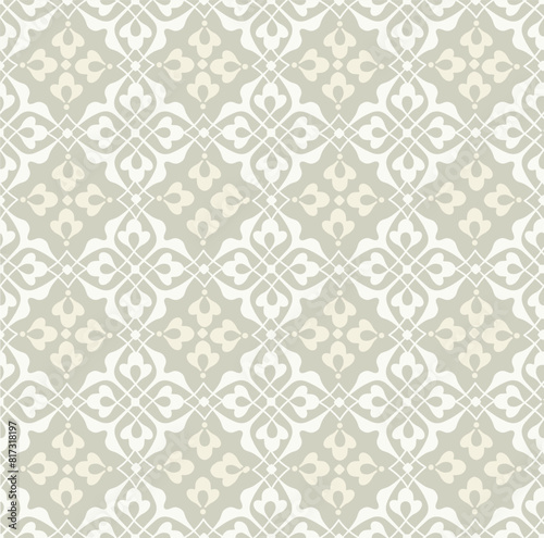 © Terriana, Obraz premium Floral arabesque minimal Seamless pattern. geometric brocade texture. Fabric background. Abstract trendy fabric design style.