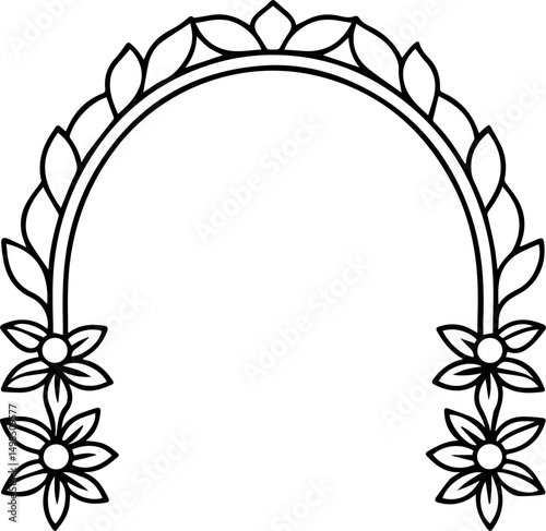 © 99 vector art, Obraz premium floral arch frame outline line art illustration, coloring book page