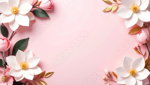Obraz premium Floral arrangement display studio digital art pink background top view nature inspiration for design projects