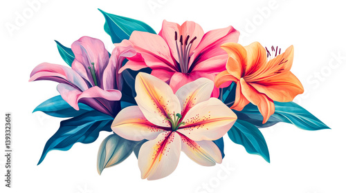 Naklejka premium Floral arrangement of lilies, vibrant illustration, cut out transparent