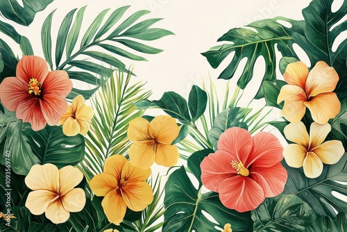Naklejka premium Floral art design capturing lush greenery and vibrant blossoms, ideal for...