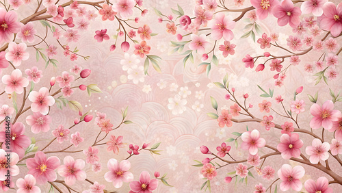 Fototapeta premium Floral backdrop with Japanese pattern for cherry blossom icons, floral, backdrop, Japanese, pattern, cherry blossom