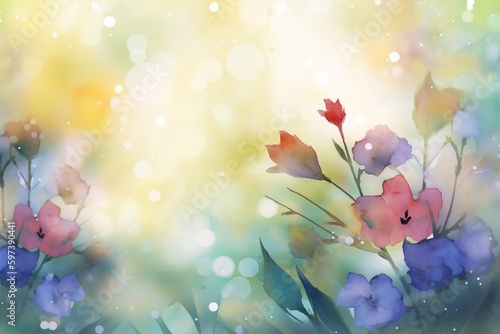 © Master-L, Obraz premium floral background with bokeh, watercolor- Ai
