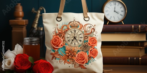 Fototapeta premium Floral bag design featuring a mockup of the logo on the bag.