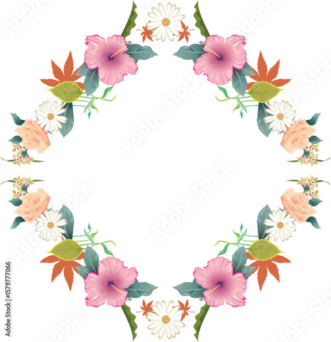 © Rizky, Fototapeta premium Floral border box label of wreath with branch and leaves design