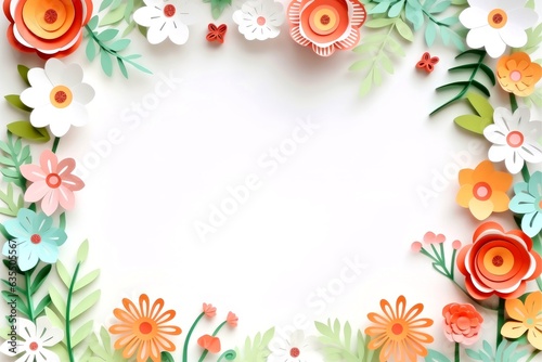 © AITTHIPHONG, Fototapeta premium Floral border frame card template. green flowers, leaves, for banner, wedding card. Springtime composition with copy-space