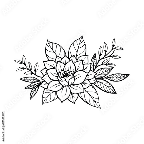 © Online Graphic BD, Fototapeta premium Floral bouquet illustration using clean line art