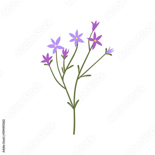 © Good Studio, Naklejka premium Floral branch. Gentle flower, spreading bellflowers with simple tiny delicate blossoms. Wildflower, field meadow blooming plant. Botanical flat vector illustration isolated on white background