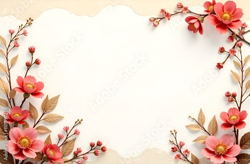 Naklejka premium Floral card with pink roses on light textured background. Copy space.
