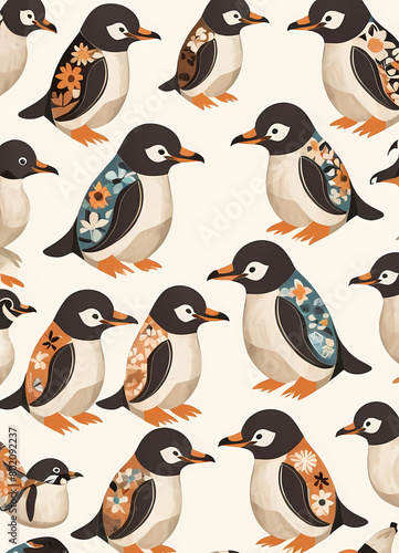 © Dmitry, Obraz premium Floral Cute Baby Penguin Nursery Generative AI Illustration
