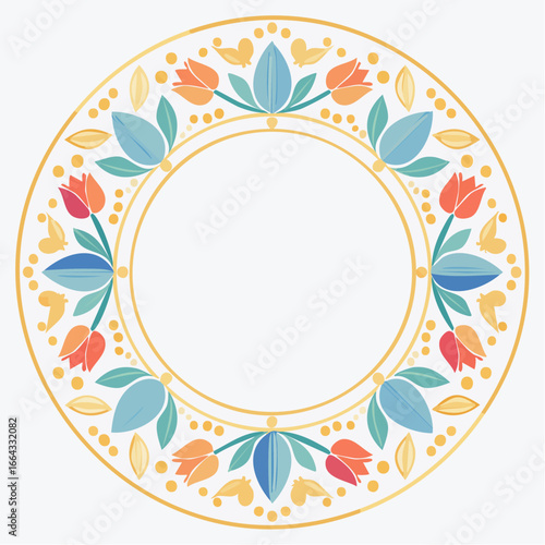 © Semi, Fototapeta premium Floral Decorative Circle Frame With Tulips