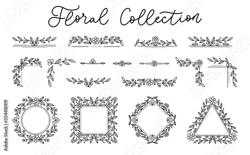 © Microstocker.Pro, Obraz premium Floral design frames in black colour with text vector illustration. Different geometrical forms with flowers flat style. Modern design. Isolated on white background