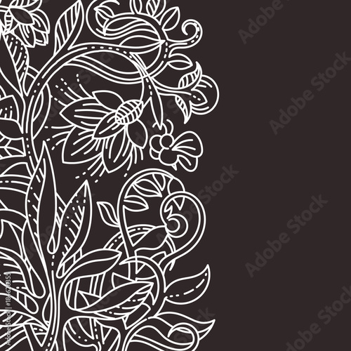 © Nevada31, Fototapeta premium Floral design template linear style. White on dark brown.